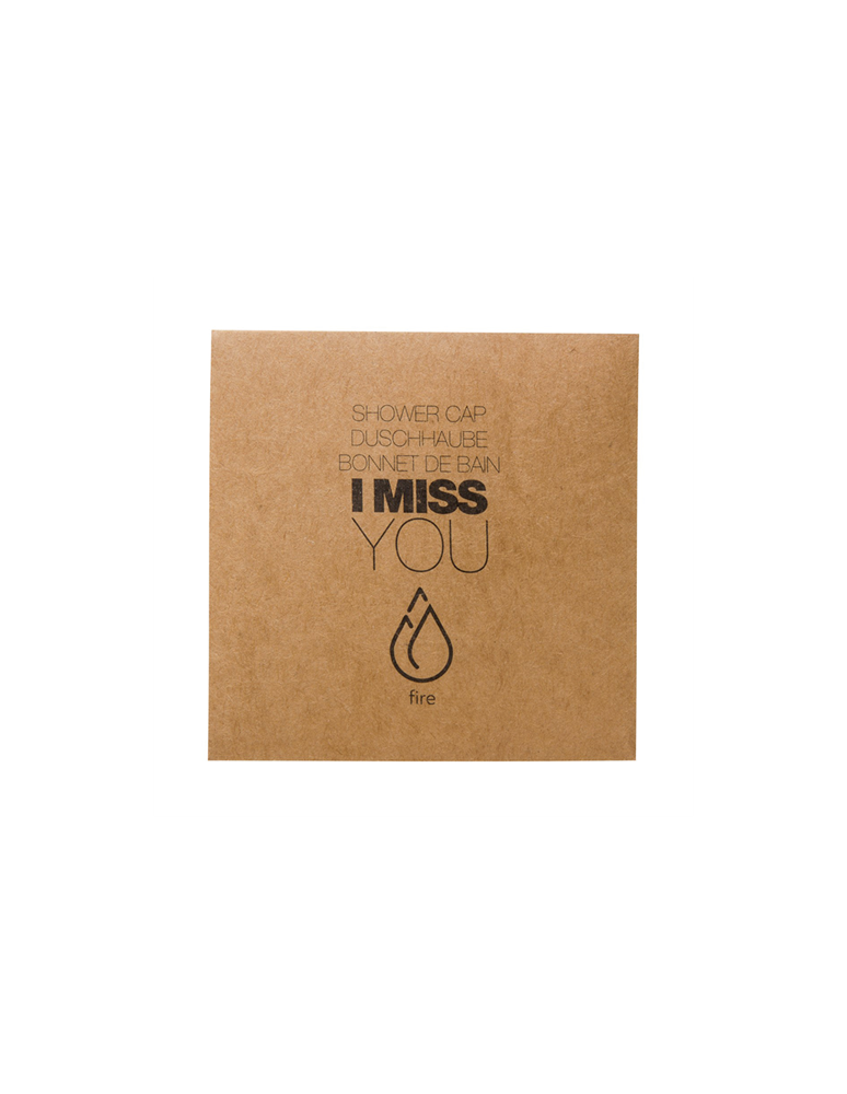 Gorro de ducha Botanika en envoltorio individual, ideal como producto de cortesía en hoteles, alojamientos turísticos y centros de bienestar.