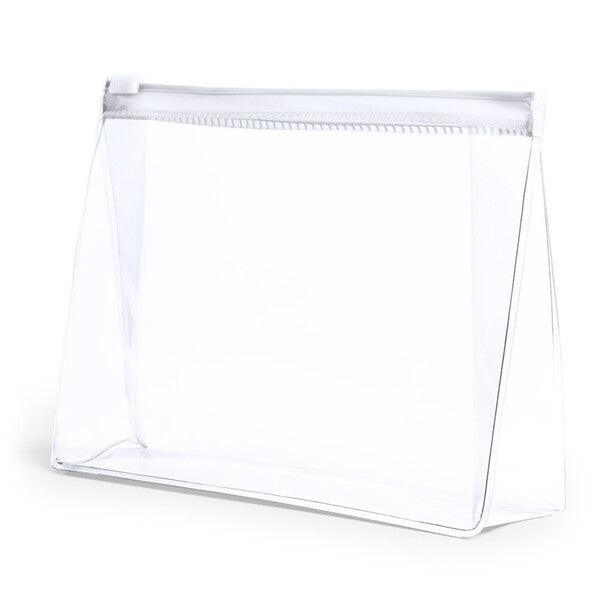 Neceser con cierre de cremallera tipo ZIP, tamaño 17 x 23 cm. Práctico, resistente y reutilizable, ideal para presentar kits de higiene o amenities en hoteles, alojamientos y eventos. Pack de 100 unidades.