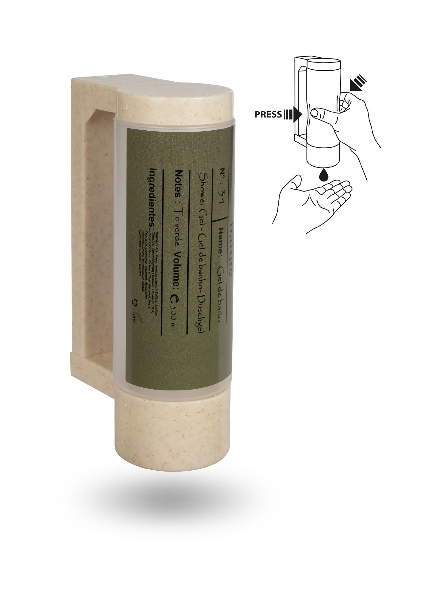 Soporte con botella dispensadora vacía de 400 ml BIO - Antirrobo (Para gel de ducha)