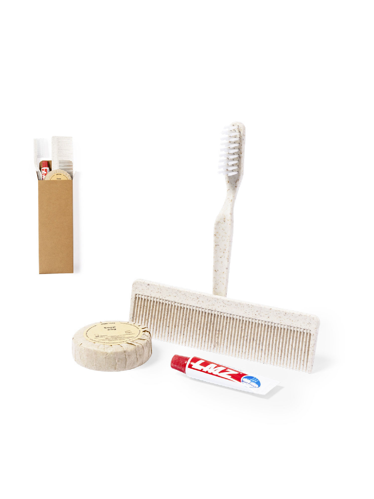 ✅ Contém escova de dentes, pasta (6 g), sabonete (20 g) e pente – tudo para a higiene diária.